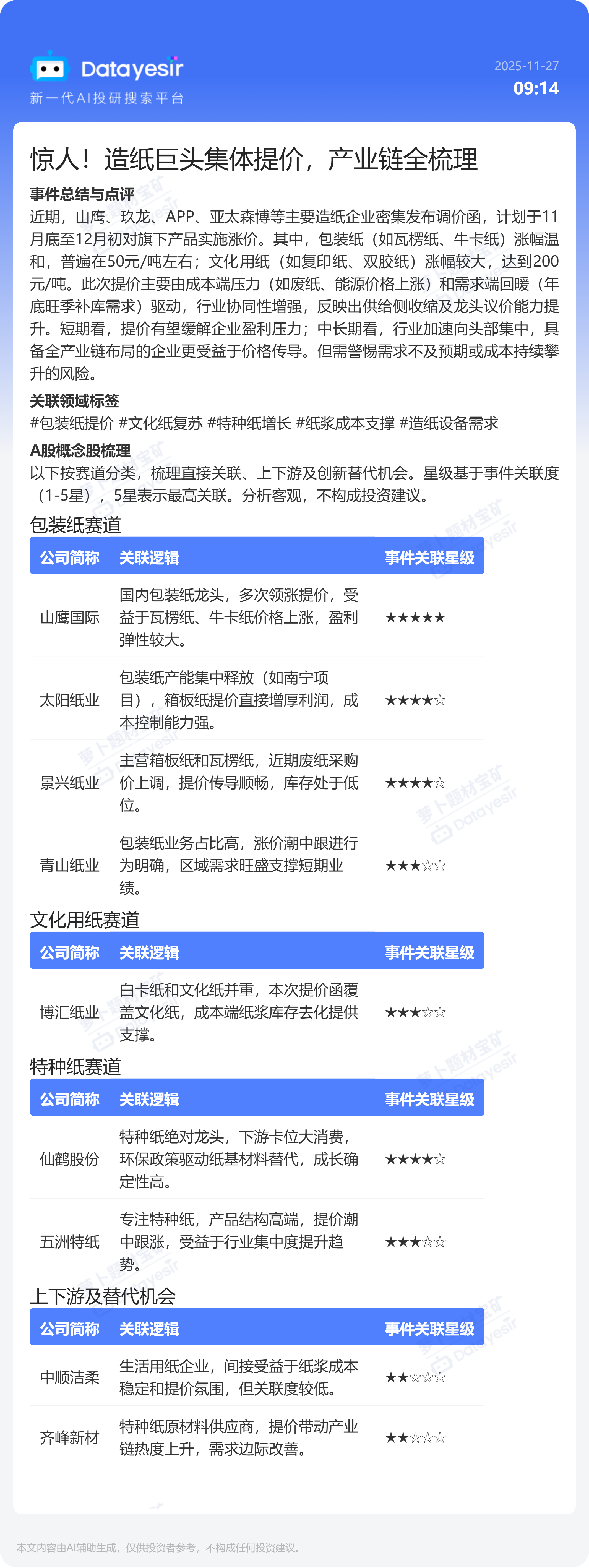 惊人!造纸巨头集体提价,产业链全梳理