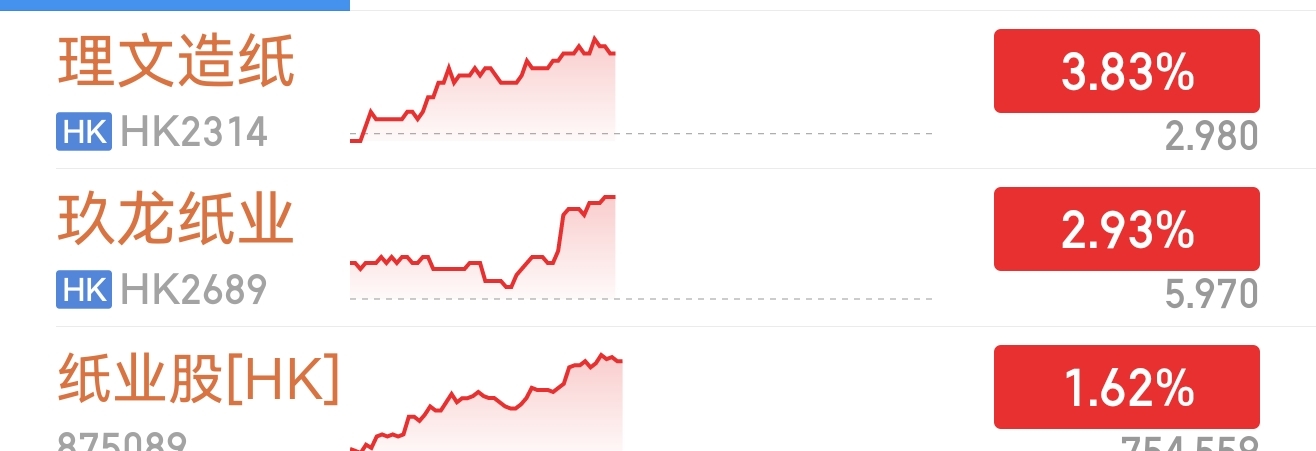 $博汇纸业(SH600966)$ $理文造纸(HK|02314)$ $玖龙纸业(HK|02689)$