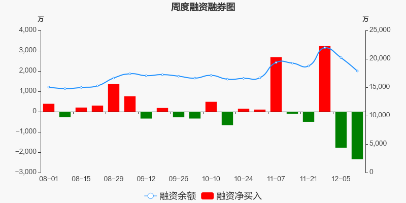 博汇纸业本周(2025/12/08-2025/12/12)累计跌幅达5.93%,截至12月12日最新股价报收5.87元。从增量上来看,12月8日至12月12日融资买入交易规模4234.19万元,融资偿还规模6576.91万元,期内融资净偿还2342.72万元。从存量上来看,截止12月14日,博汇纸业融资融券余额1.79亿元,其中融资余额规模1.79亿元,融券余额规模34.75万元。