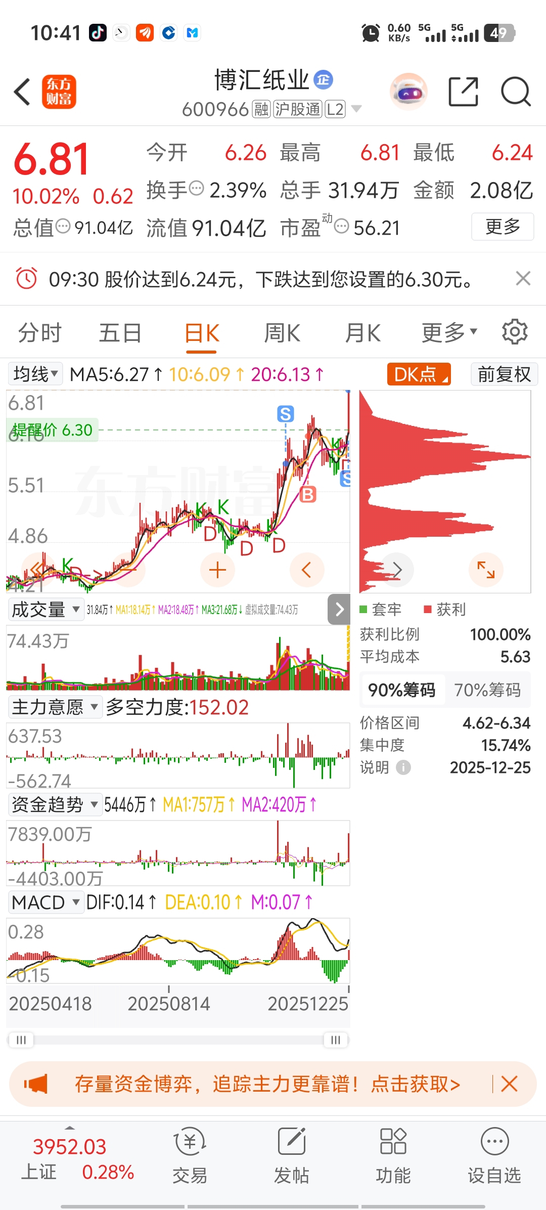 $博汇纸业(SH600966)$ 交筹,你们来