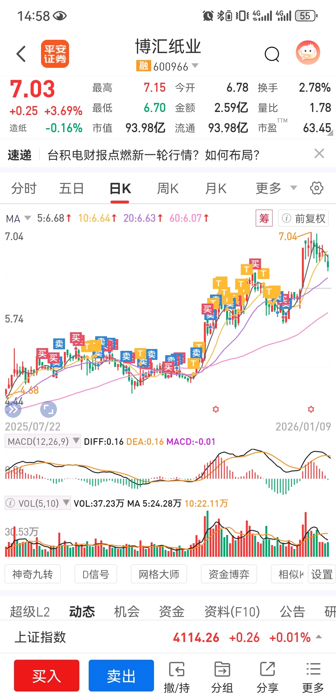 $博汇纸业(SH600966)$ 持仓一千多天,有时候不动,有时候又不停的交易,从东财换到平安,又从平安换回东财。手续费交了不少,现在是赚的。