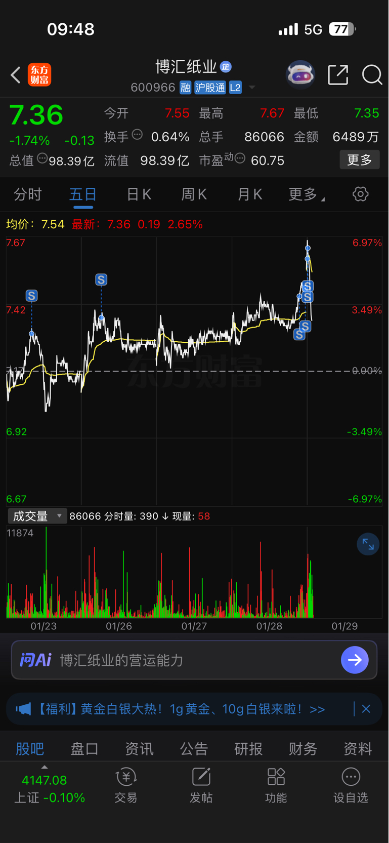$博汇纸业(SH600966)$ 呵呵呵~
