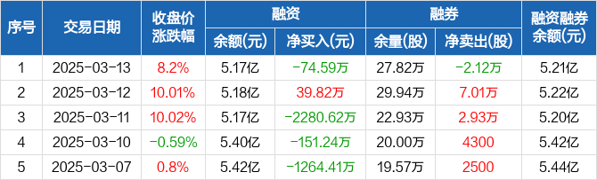 内蒙一机:融资净偿还74.59万元,融资余额5.17亿元(03-13)