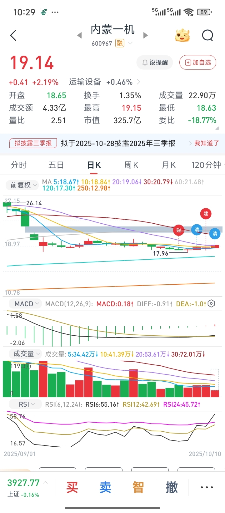 $内蒙一机(SH600967)$ 软脚鸡,出了出了
