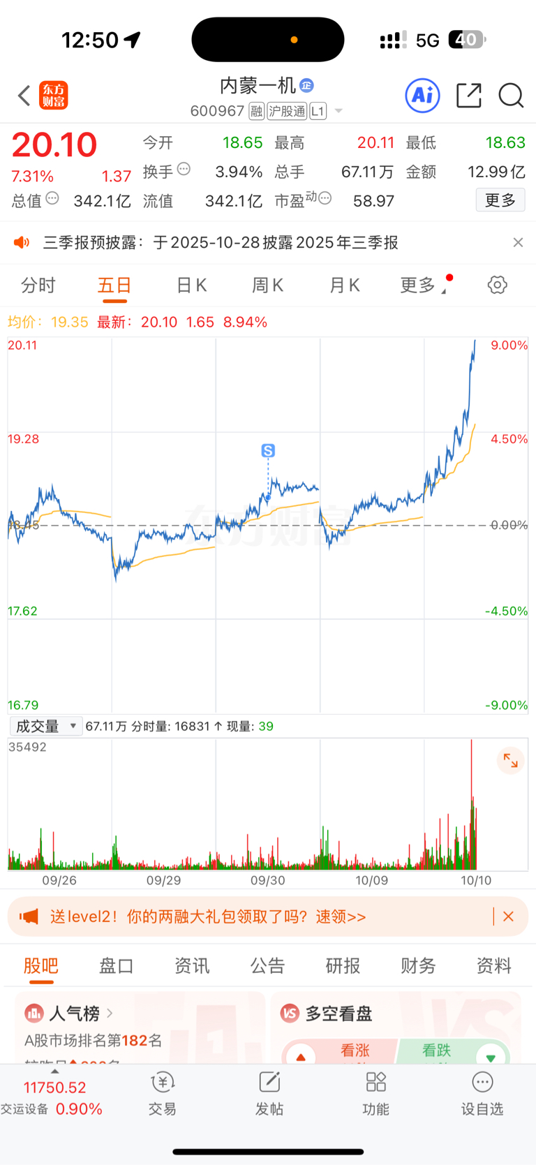 $内蒙一机(SH600967)$ 割了你飞了
