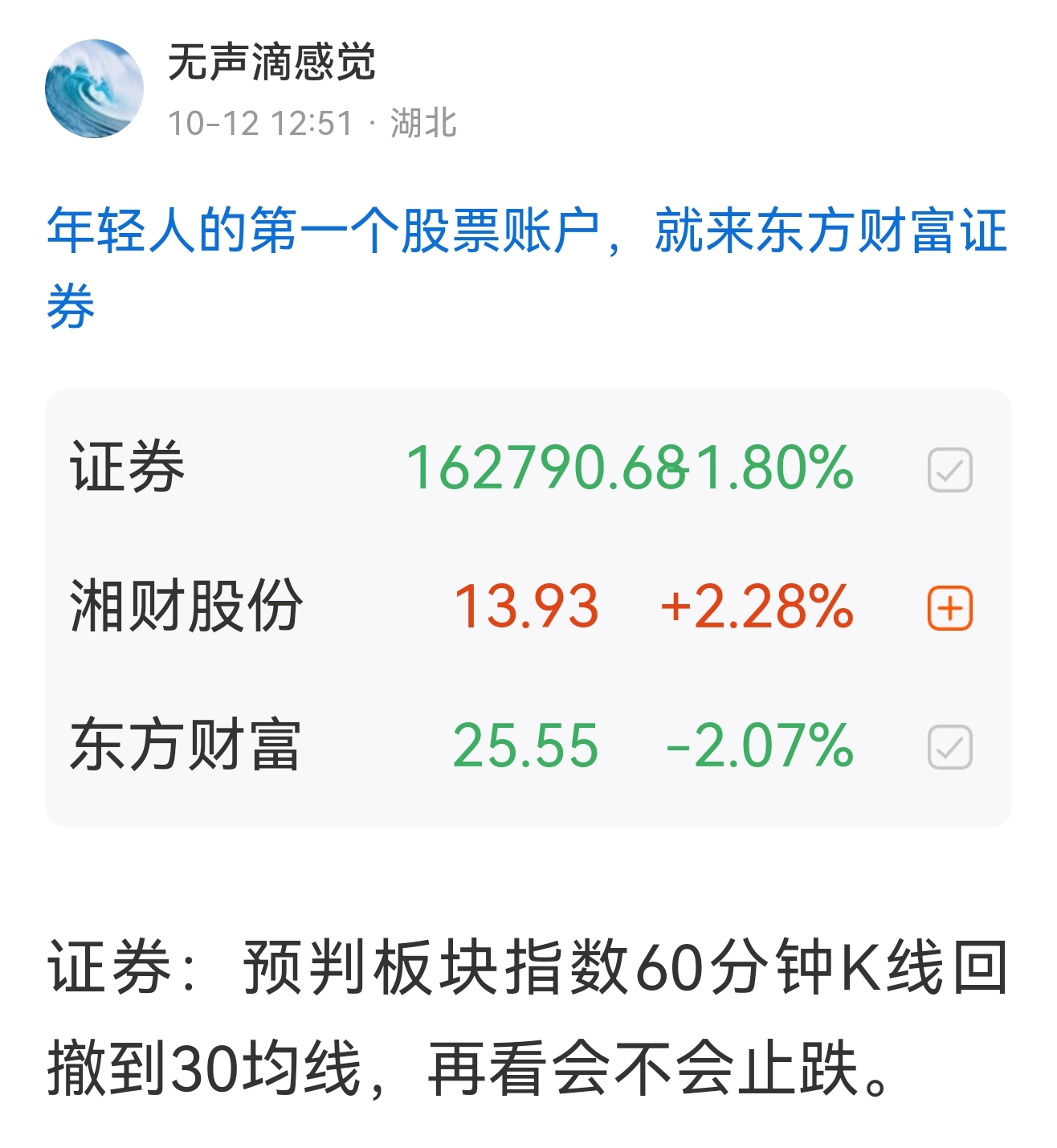 温馨提示: 1.根据《证券法》规定,禁止编造、传播虚假信息或者误导性信息,扰乱证券市场;2.用户在本社区发表的所有资料、言论等仅代表个人观点,与本网站立场无关,不对您构成任何投资建议。用户应基于自己的独立判断,自行决定证券投资并承担相应风险。《东方财富社区管理规定》