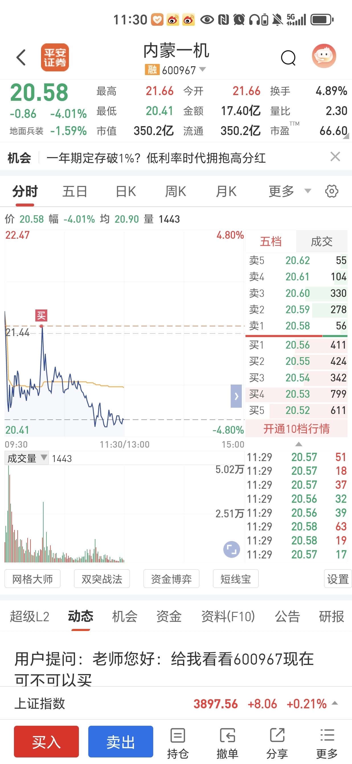 $内蒙一机(SH600967)$ 哎,大韭菜一枚