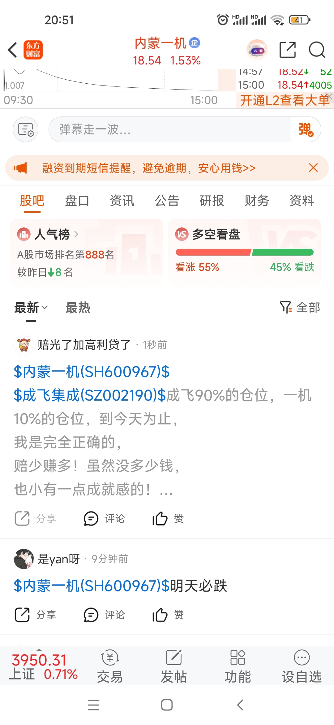温馨提示: 1.根据《证券法》规定,禁止编造、传播虚假信息或者误导性信息,扰乱证券市场;2.用户在本社区发表的所有资料、言论等仅代表个人观点,与本网站立场无关,不对您构成任何投资建议。用户应基于自己的独立判断,自行决定证券投资并承担相应风险。《东方财富社区管理规定》