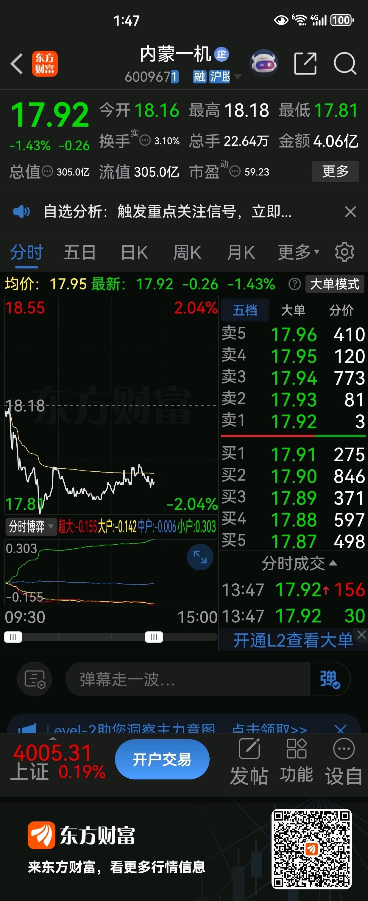$内蒙一机(SH600967)$ 看分时博弈线,每天都是韭菜接盘主力跑路