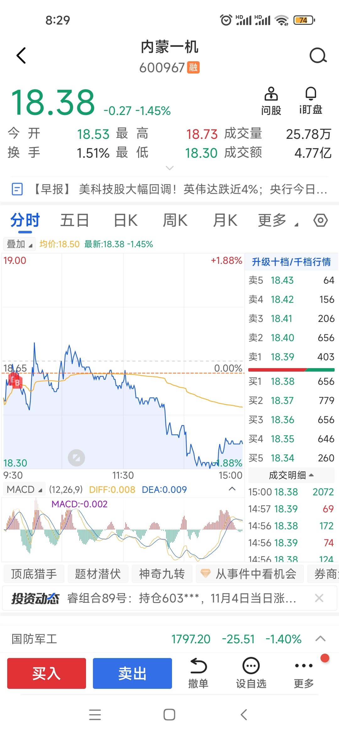 $内蒙一机(SH600967)$ 我的成本18.65元了!