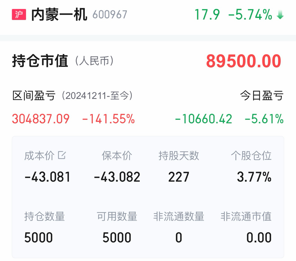 $内蒙一机(SH600967)$ 跑了跑了 每次反弹低点更低 亲爱的内蒙 哥下次一定会回来的