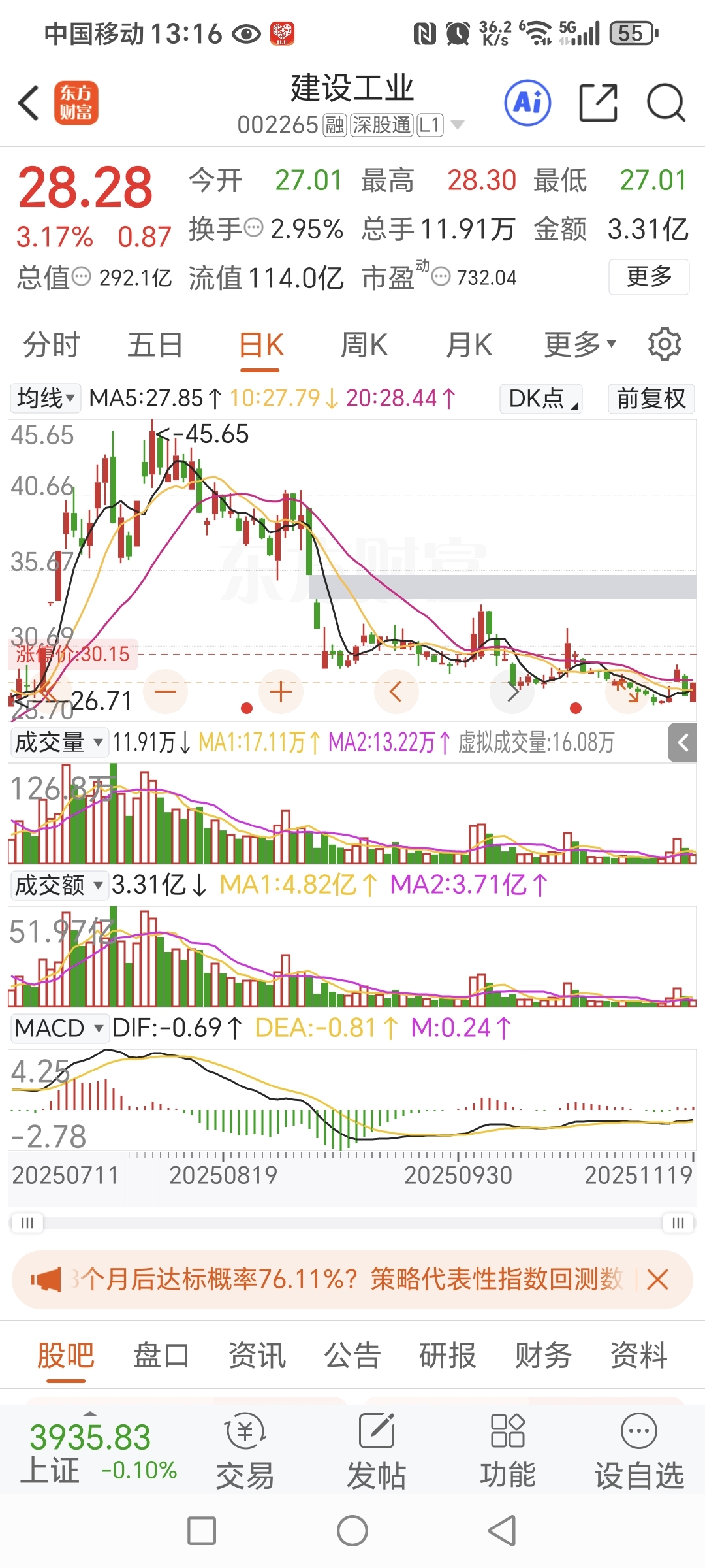 $内蒙一机(SH600967)$ 你俩走势一样呀