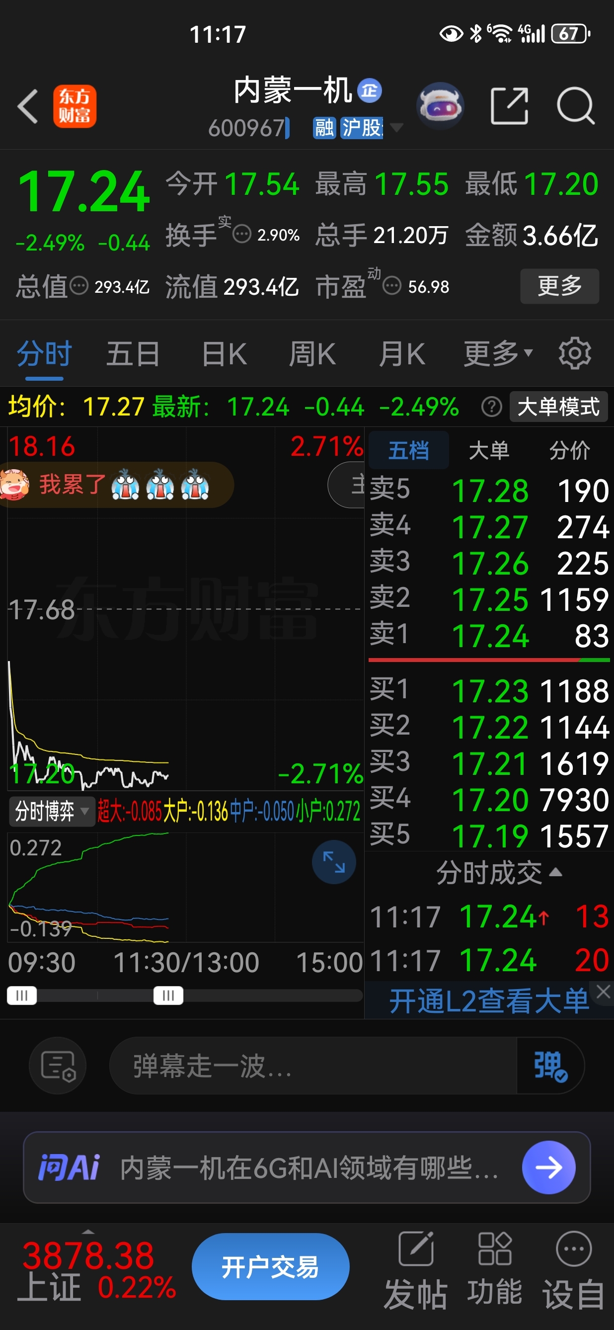 $内蒙一机(SH600967)$ 看看分时博弈图主力跑路韭菜接盘,