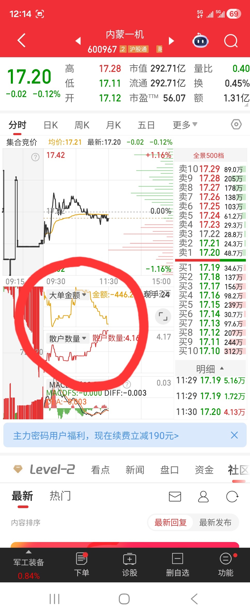 $内蒙一机(SH600967)$ 只要散户数据流入,大单马上砸盘收割,吃相太难看,量化手段恶劣至极!