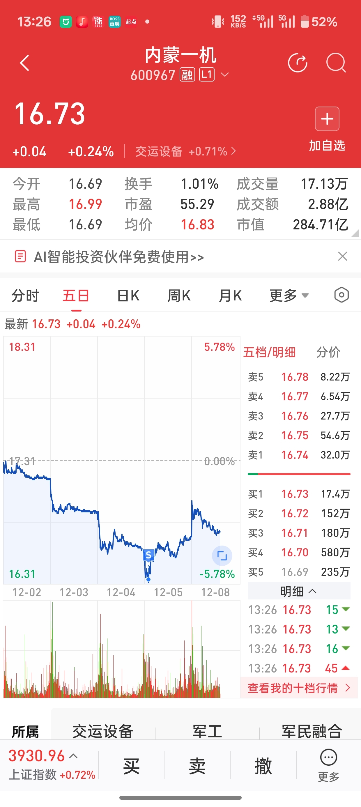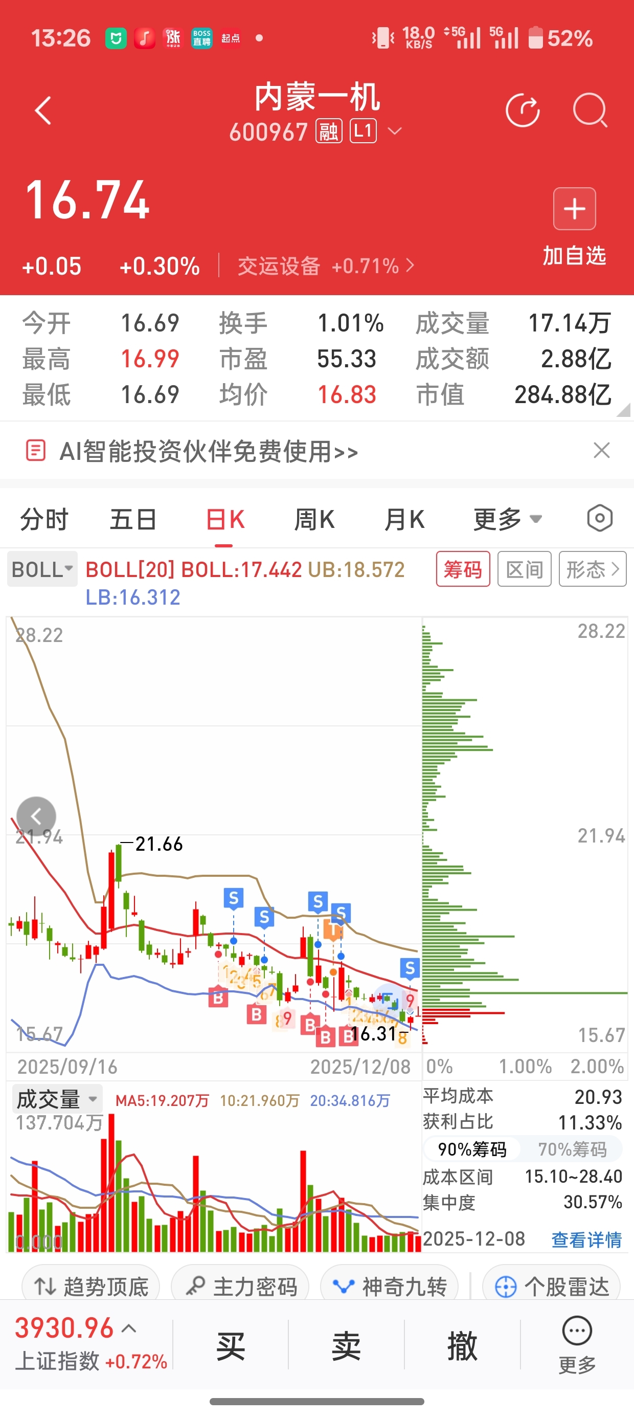 哈哈上周五最低点卖了一机,之前卖,有一个人吃襄阳轴承卖了,然后吃了个涨停,这边亏