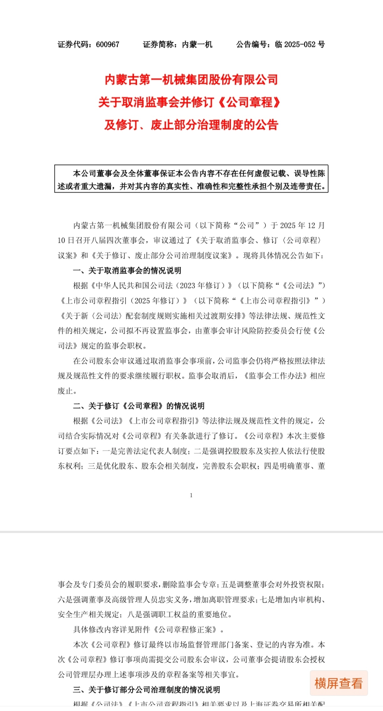 $内蒙一机(SH600967)$ 大家貌似更多关注技术面和消息面了,前几天公司发了那么多公告没人认真看吗,取消监事会的潜在风险没人关注吗