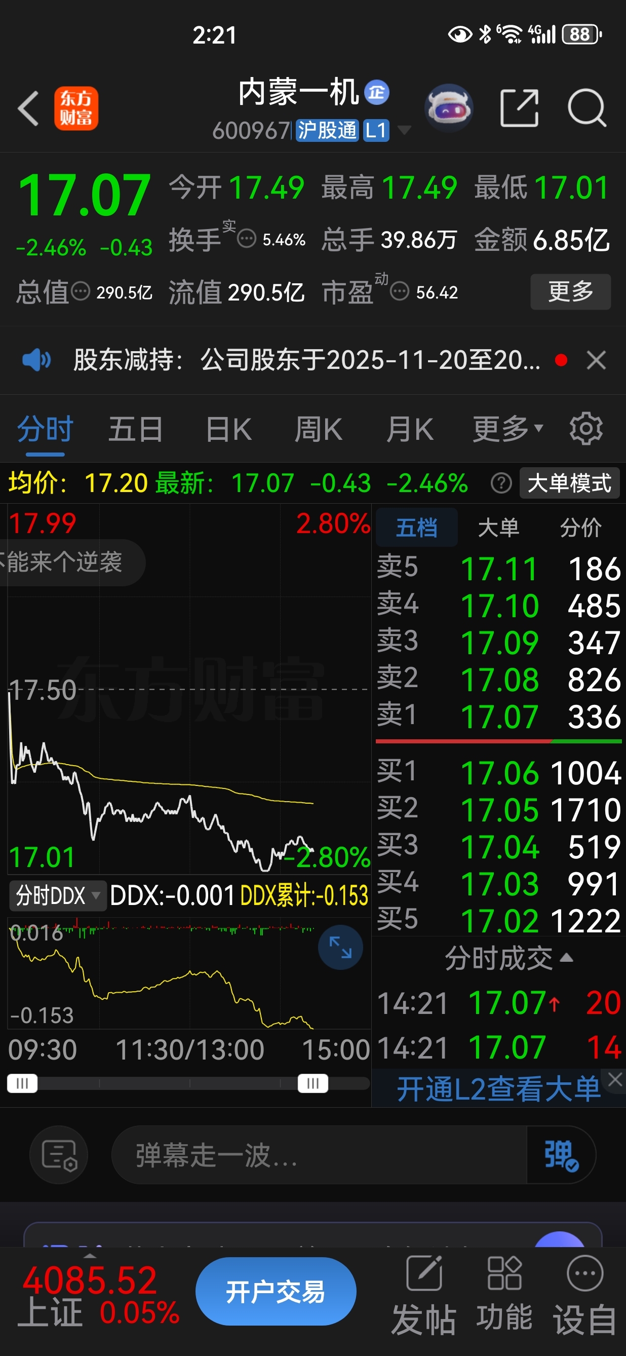 $内蒙一机(SH600967)$ 主力持续跑路中,新朋友千万不要接盘