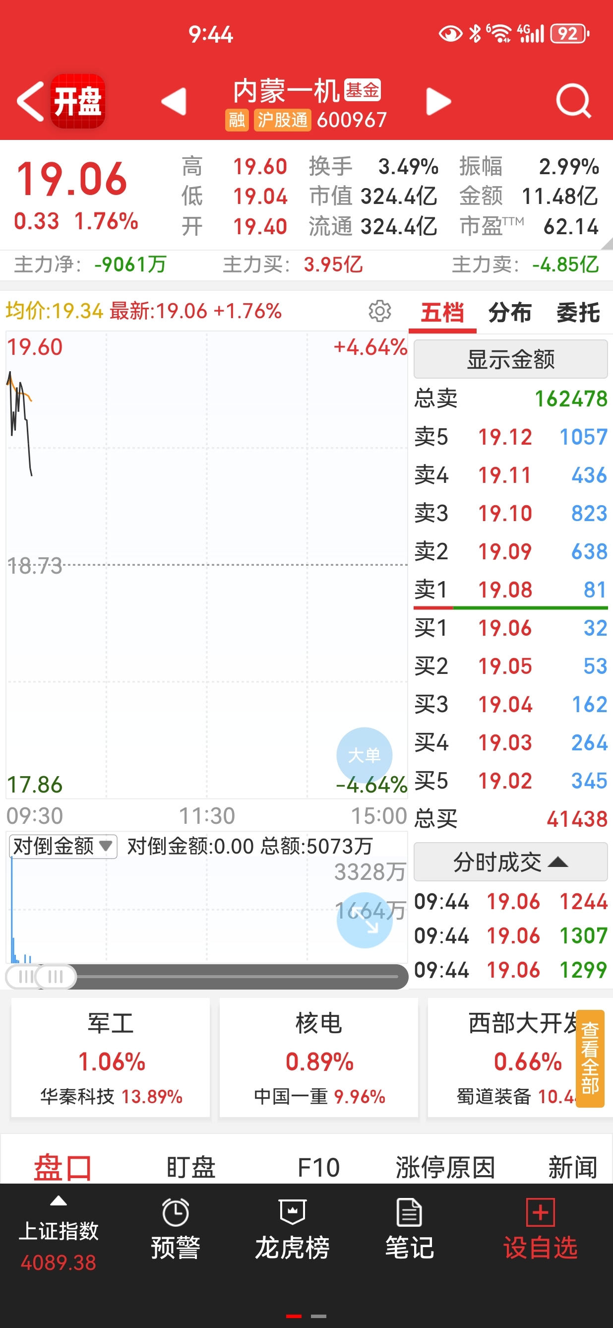 $内蒙一机(SH600967)$ 主力资金流出