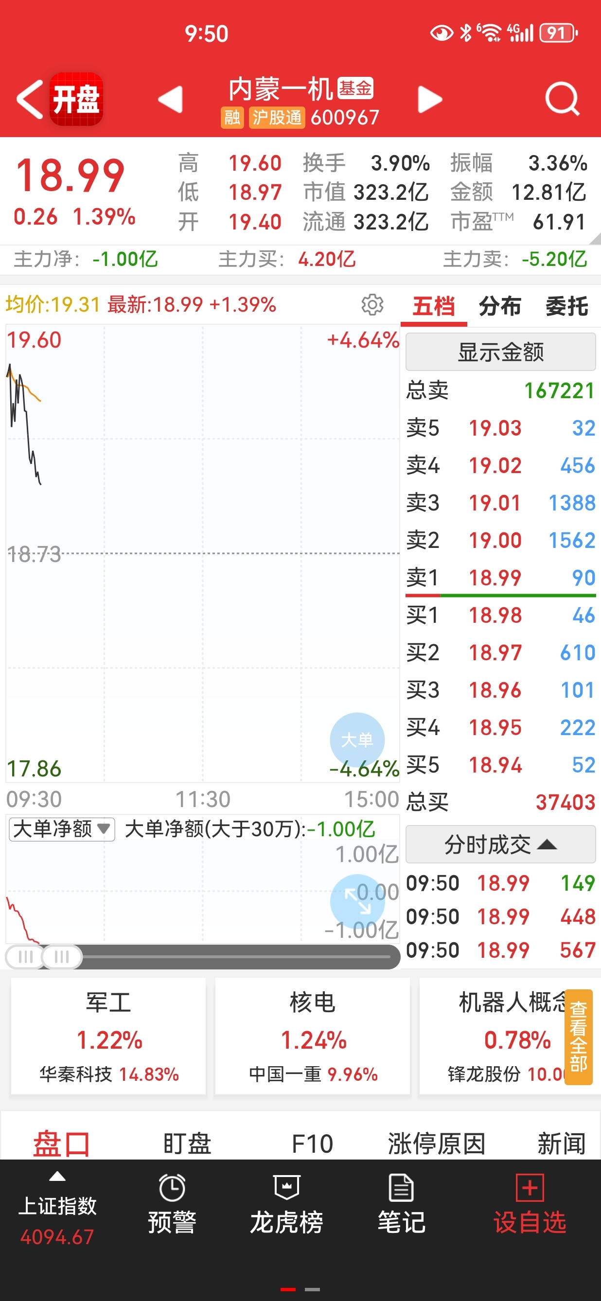 $内蒙一机(SH600967)$ 主力跑路一个亿