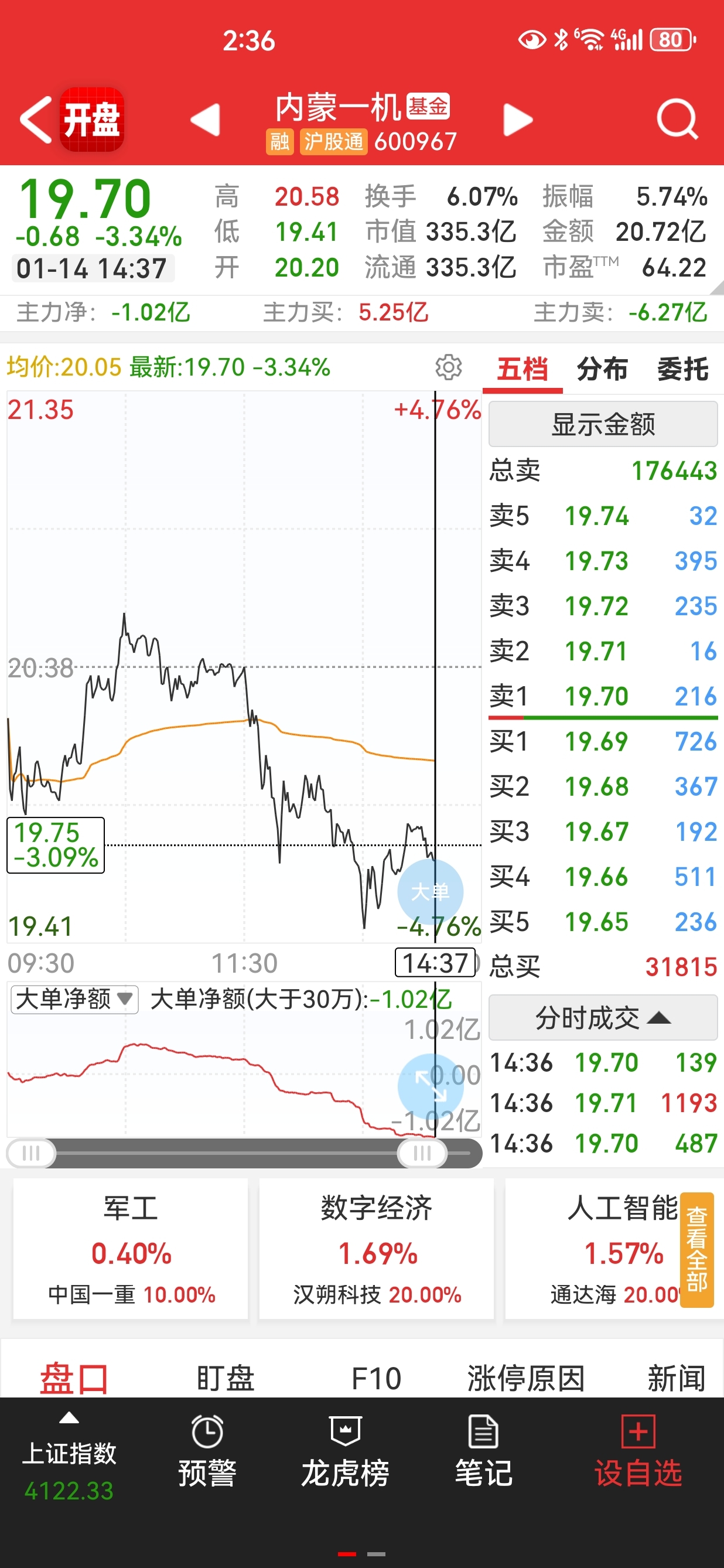 $内蒙一机(SH600967)$ 主力资金一个亿