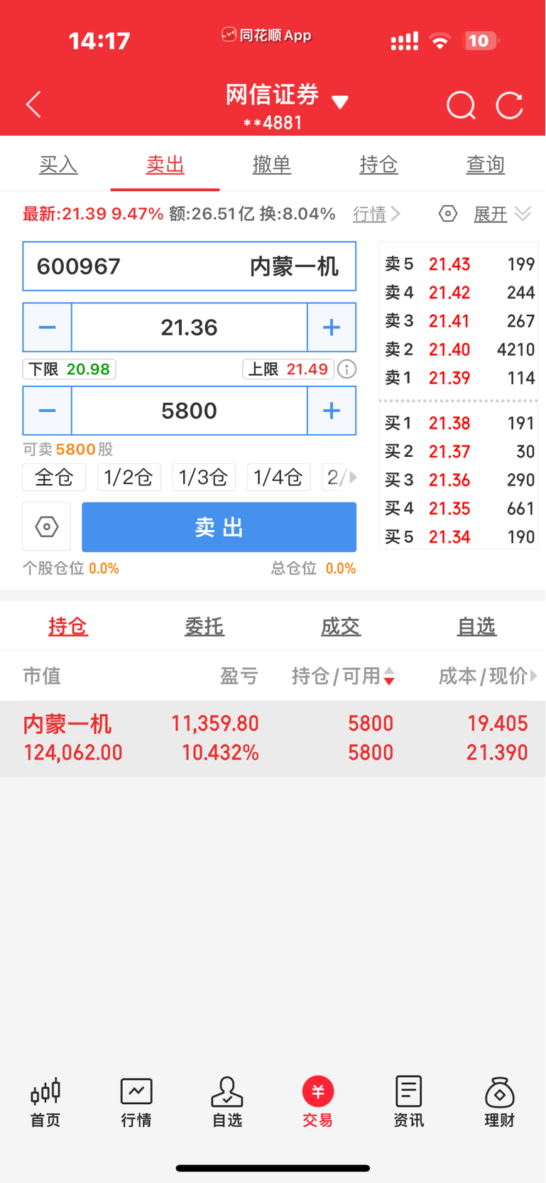 $内蒙一机(SH600967)$ 大家猜猜我卖没卖