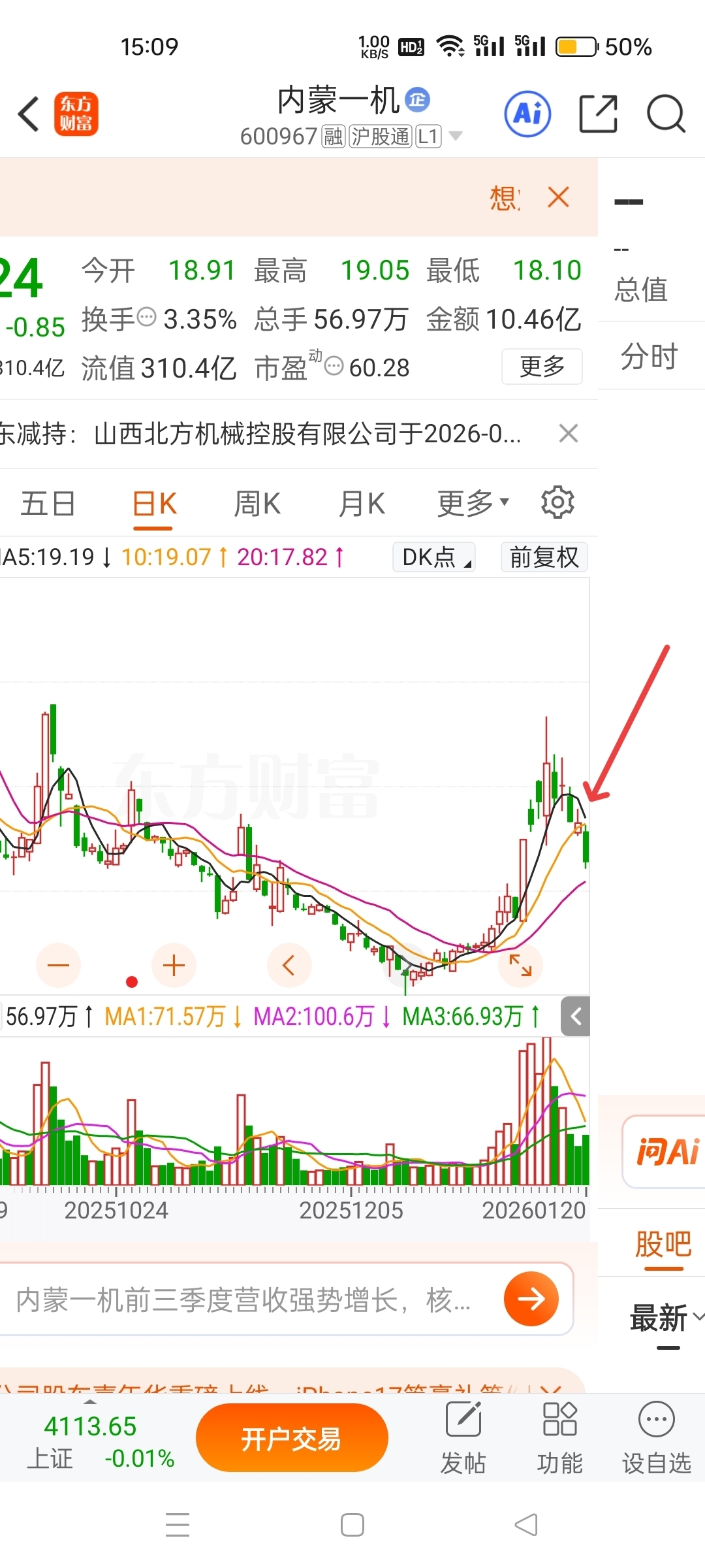 $内蒙一机(SH600967)$ 一阳一阴,明天(1.20)该收阳线了???
