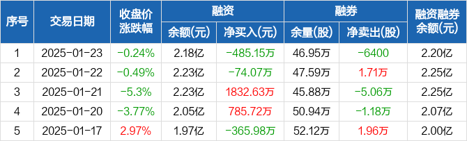 海油发展:融资净偿还485.15万元,融资余额2.18亿元(01-23)