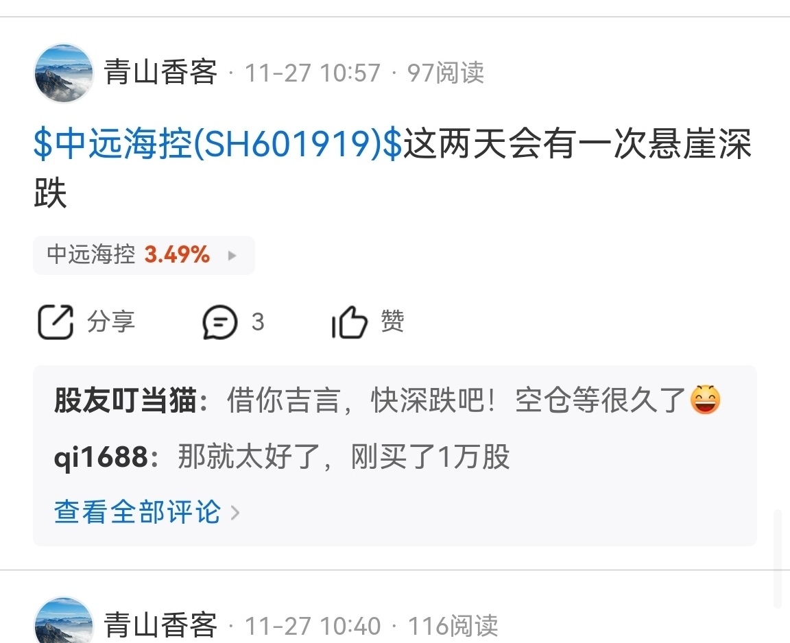 $海油发展(SH600968)$ 这条傻缺穷鬼空狗@青山香客,被海控打脸多次了,一直被打脸,被打完脸就偷偷删帖,它自己满仓被远大控股最高点被套牢,割肉后又满仓今世缘被套牢、还说有网红的粉丝来给它抬轿子,哈哈!大家要小心这条傻缺穷鬼空狗,青山臭客