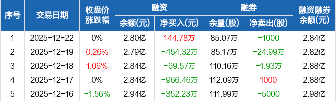 海油发展:融资净买入144.78万元,融资余额2.8亿元(12-22)