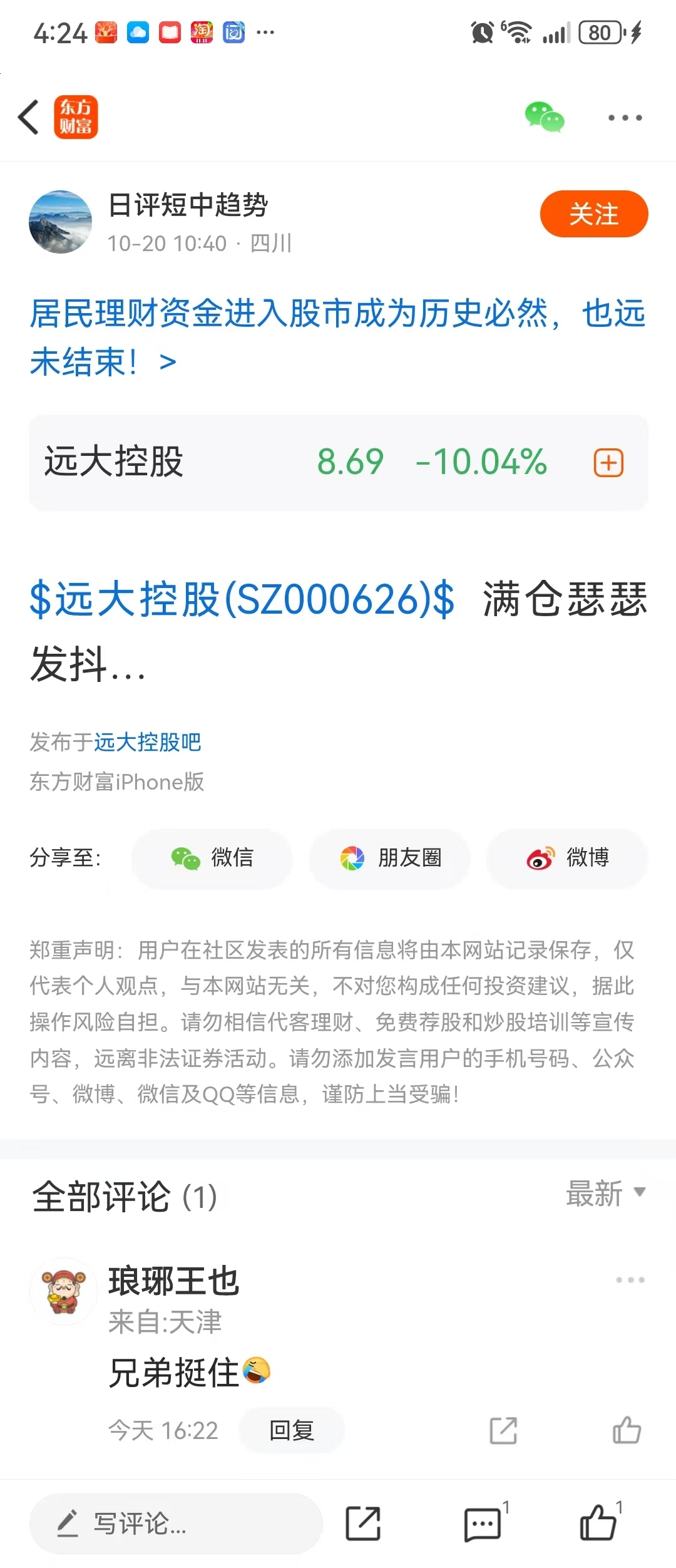 温馨提示: 1.根据《证券法》规定,禁止编造、传播虚假信息或者误导性信息,扰乱证券市场;2.用户在本社区发表的所有资料、言论等仅代表个人观点,与本网站立场无关,不对您构成任何投资建议。用户应基于自己的独立判断,自行决定证券投资并承担相应风险。《东方财富社区管理规定》
