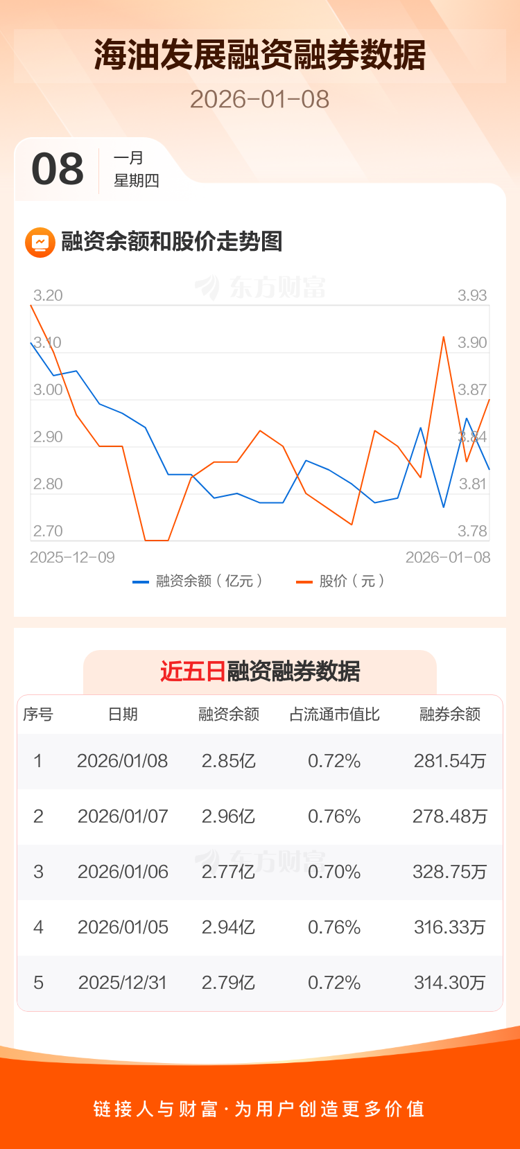 交易所最新数据显示,海油发展于2026年1月8日获融资买入1526.58万元,融资偿还2664.16万元,当日融资净偿还1137.58万元。目前,该股融资余额2.85亿,占流通市值比例为0.72%。