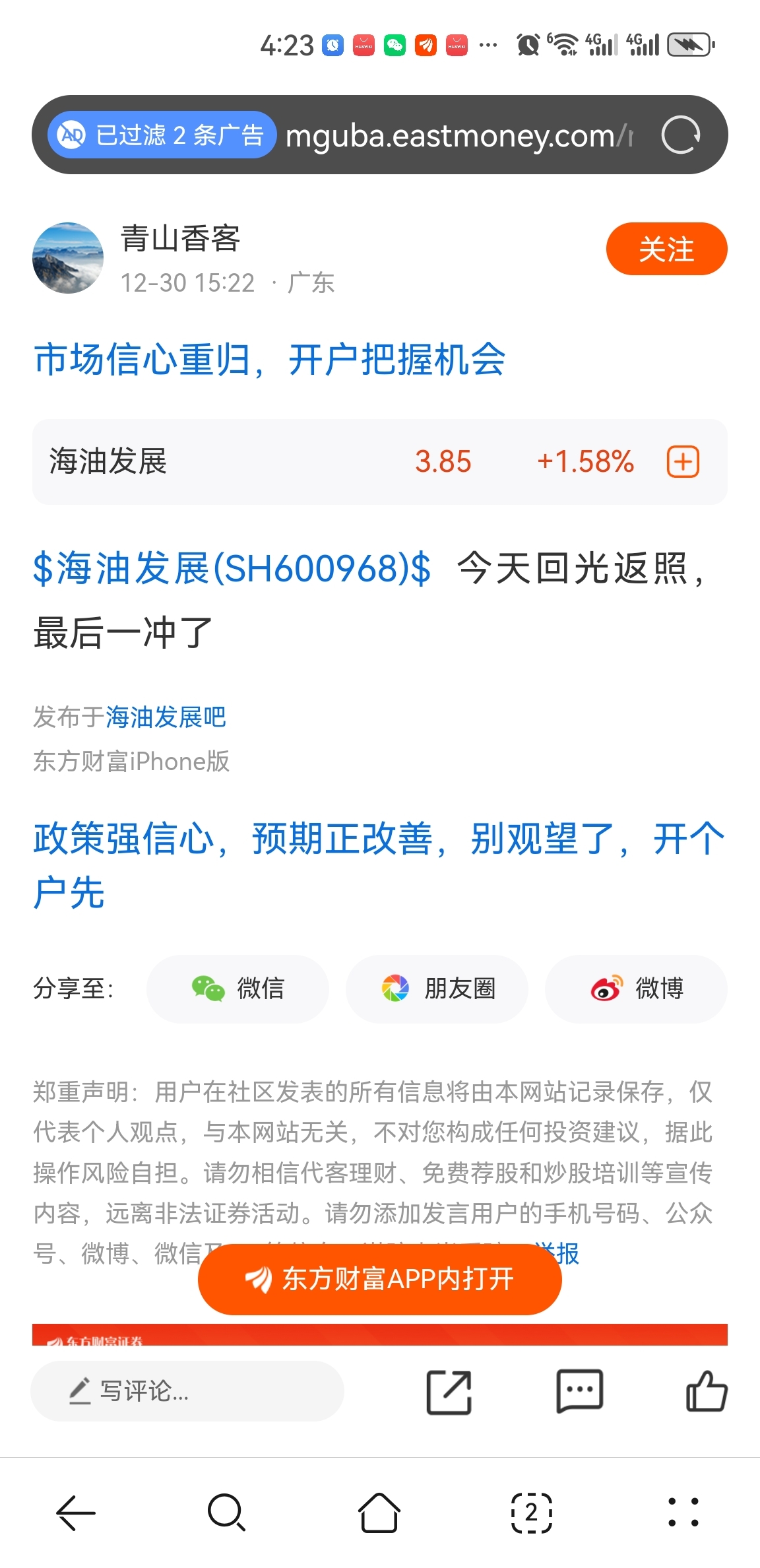 温馨提示: 1.根据《证券法》规定,禁止编造、传播虚假信息或者误导性信息,扰乱证券市场;2.用户在本社区发表的所有资料、言论等仅代表个人观点,与本网站立场无关,不对您构成任何投资建议。用户应基于自己的独立判断,自行决定证券投资并承担相应风险。《东方财富社区管理规定》