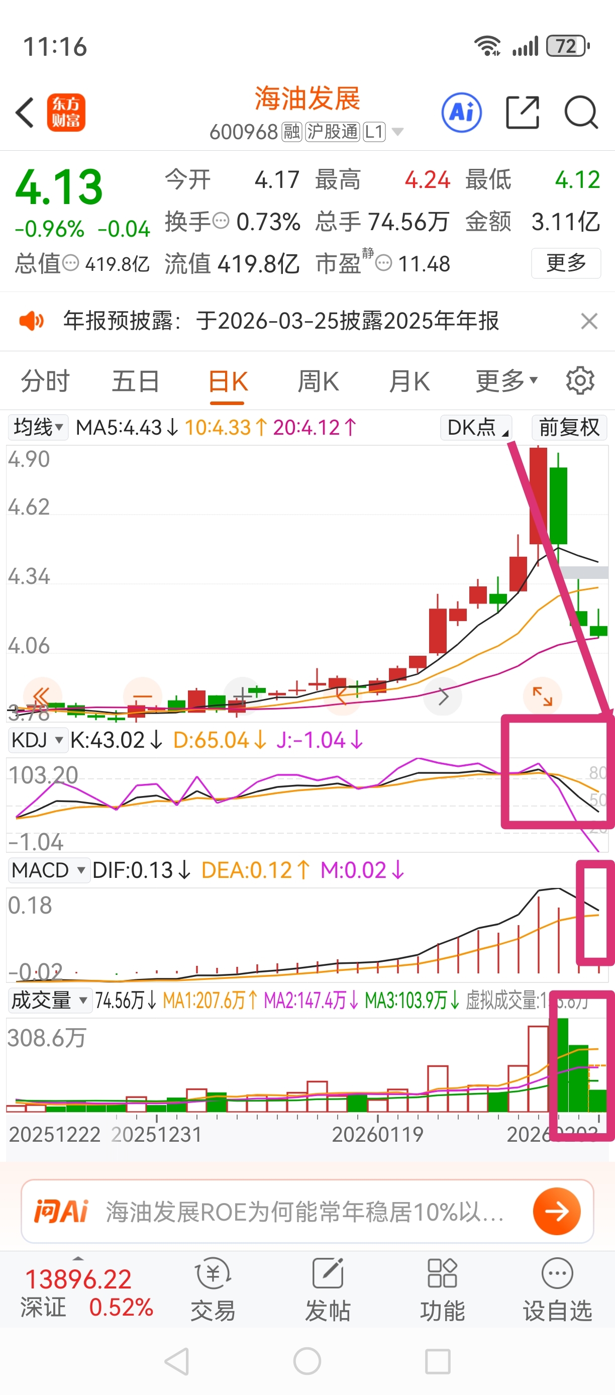 $海油发展(SH600968)$ K线死叉,Macd即将死叉!指标严重破位!看看3.9能否挺住???