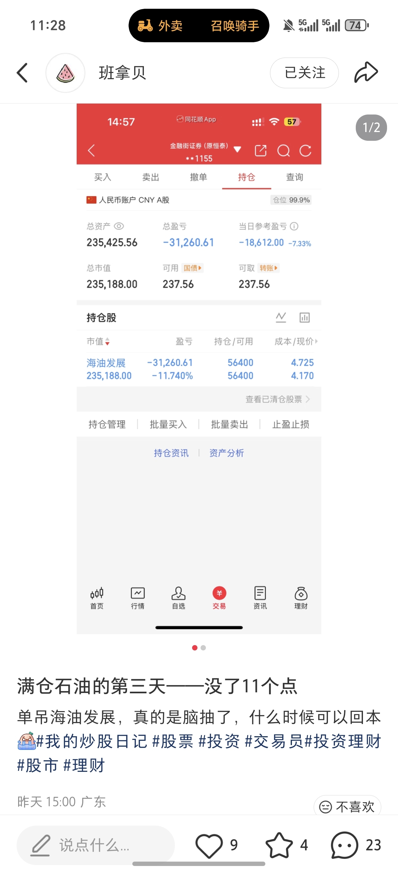 $海油发展(SH600968)$ 你们这支票真是害人啊