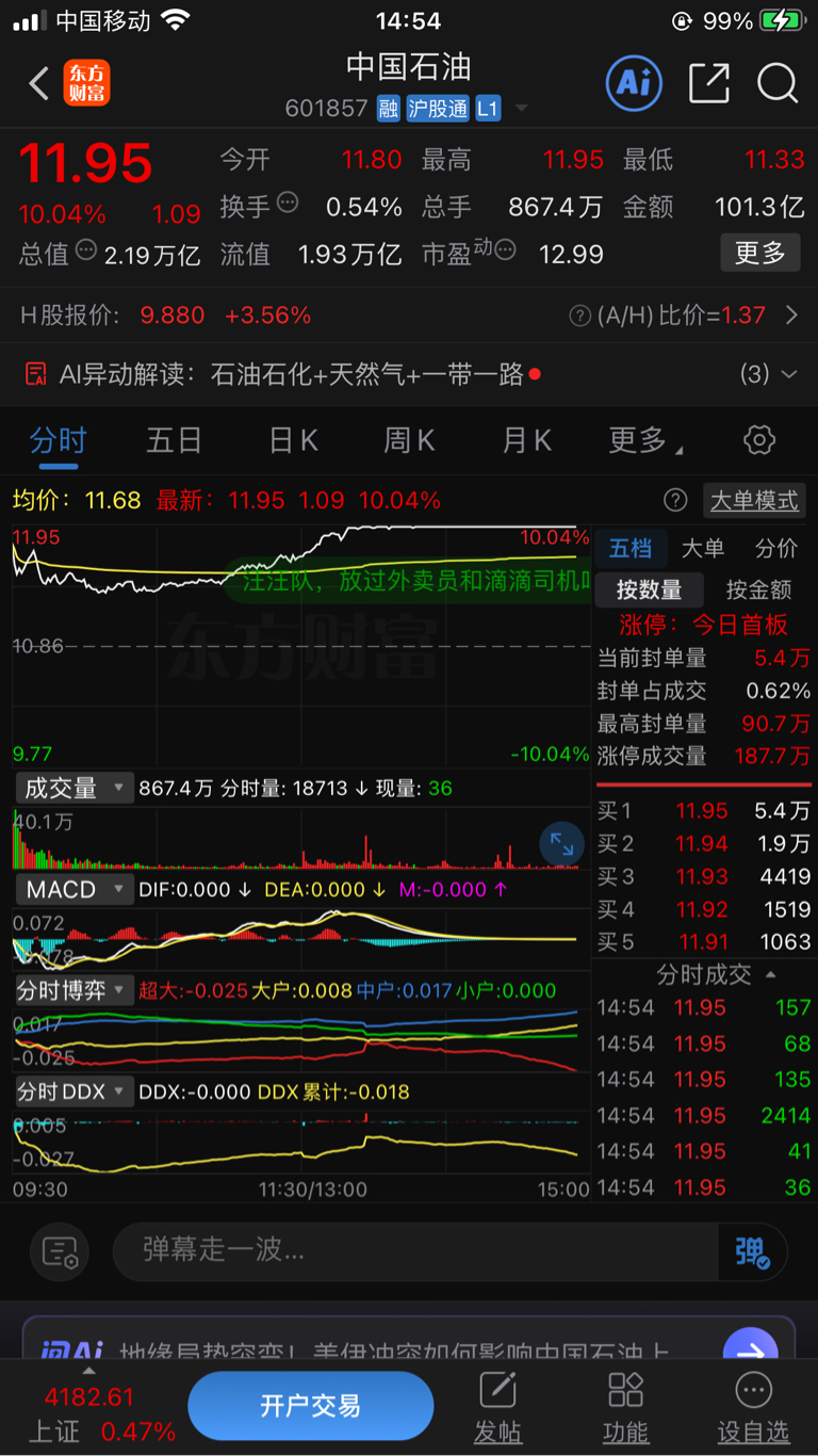 $海油发展(SH600968)$ 一天成交金额超过了101亿元!一百多亿元人民币!