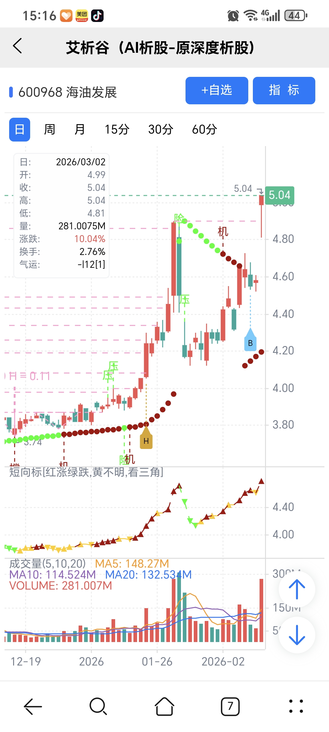 AI模型选股,量化指标识别关键点,简单技术分析确定买卖点,结合量化和人工综合运用,才能有优势。海油发展