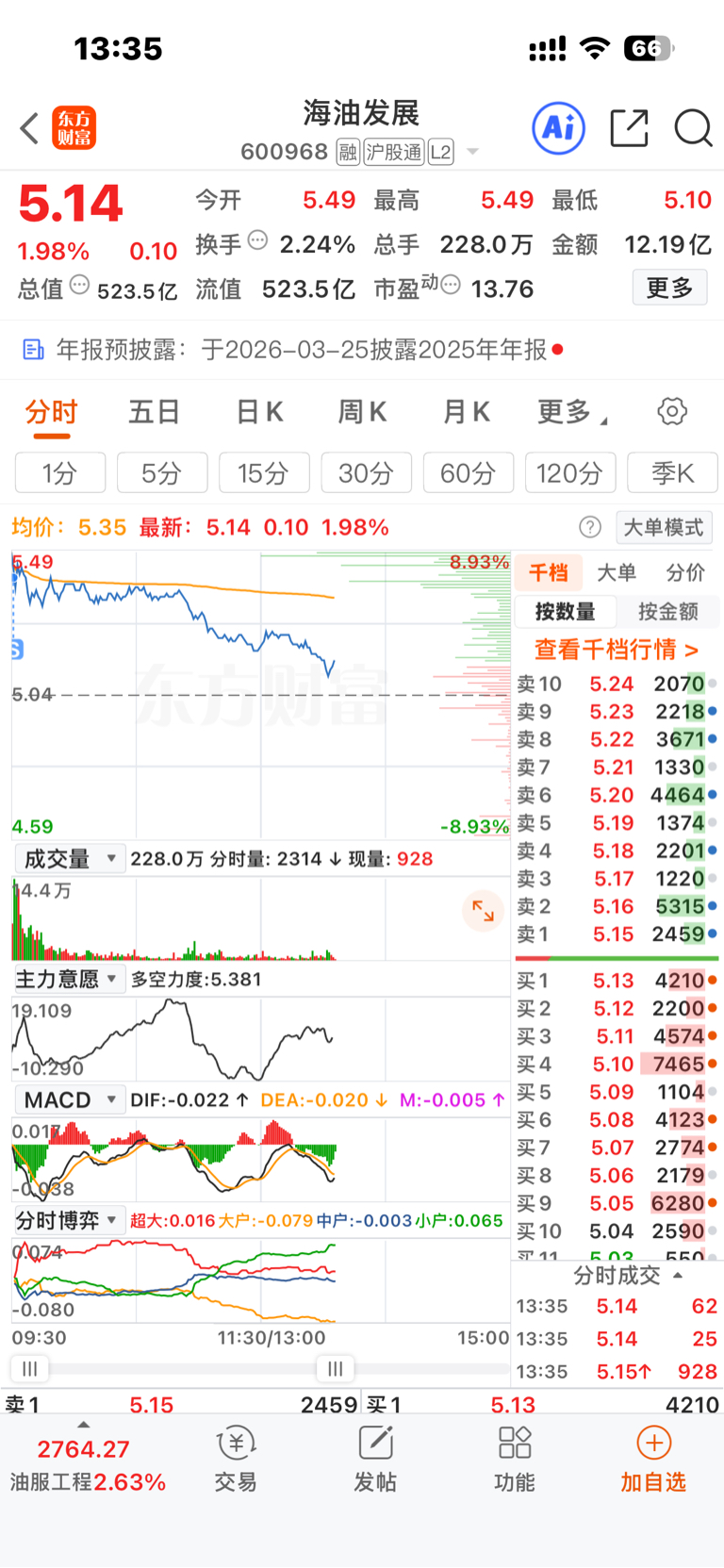 $海油发展(SH600968)$ 我们东大不需要靠石油,投机没出路