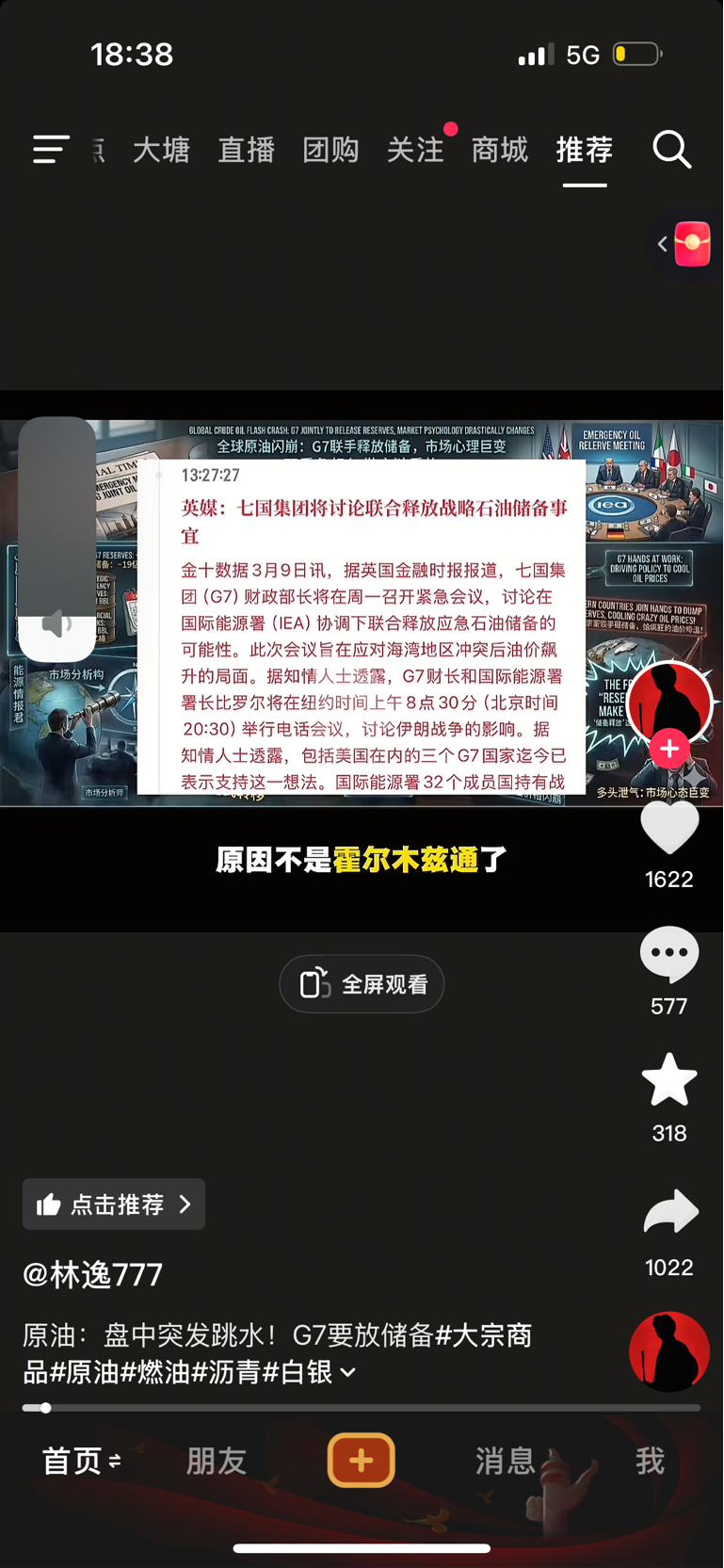 储备油出来。原油插水。明天来看戏