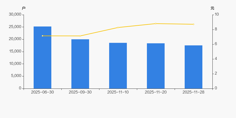 自2025年6月30日以来,公司股东户数连续4期下降,截至目前减幅为30.46%。2025年6月30日至2025年11月28日区间股价上涨21.99%。