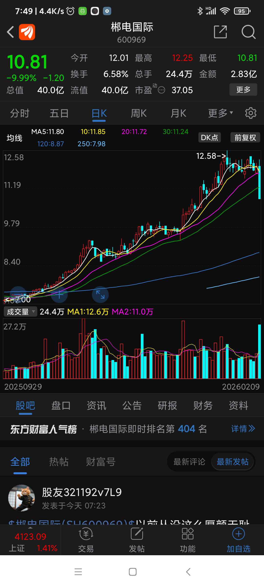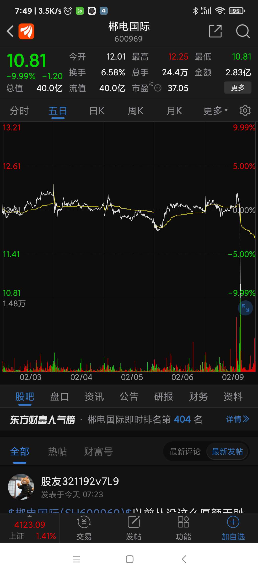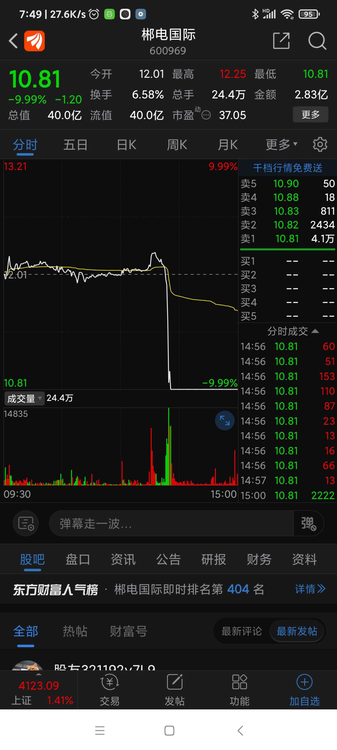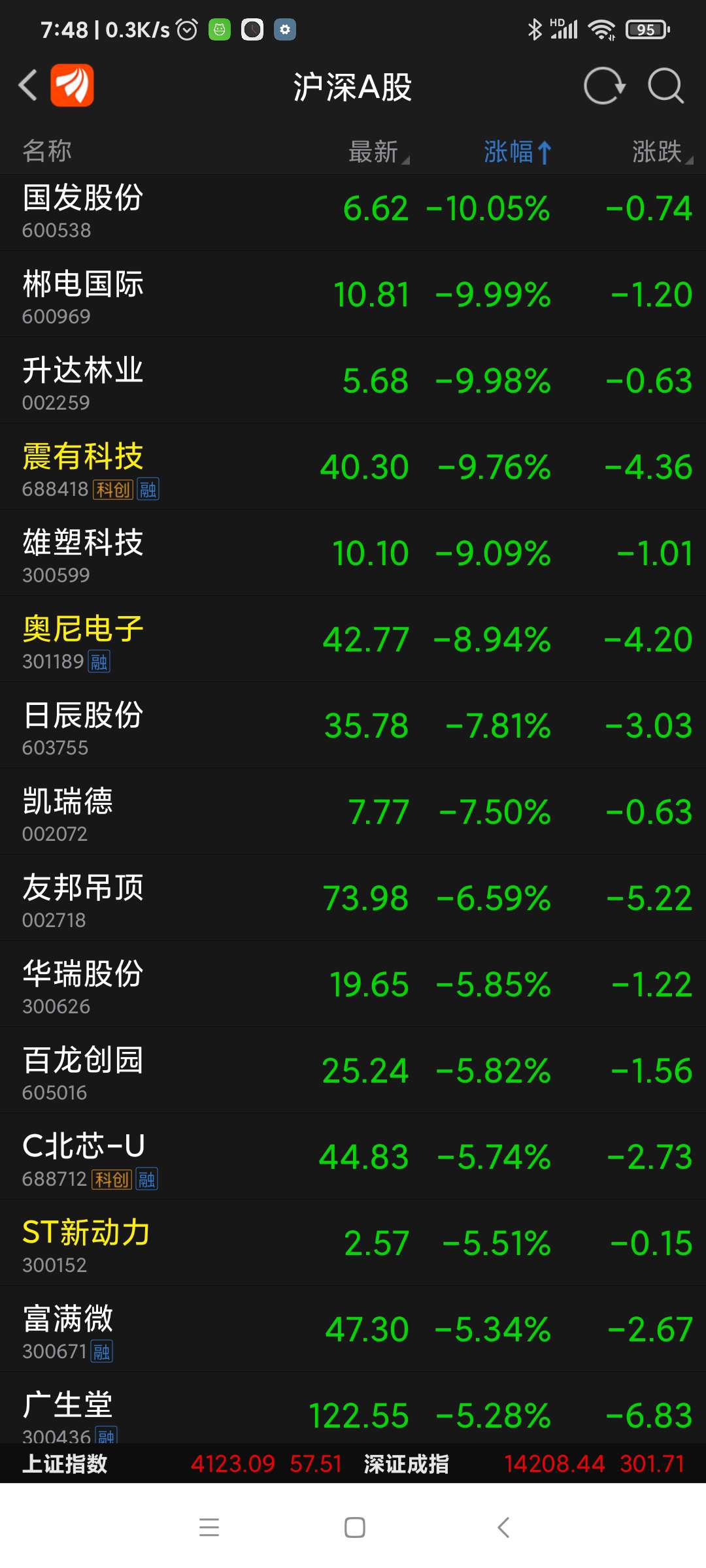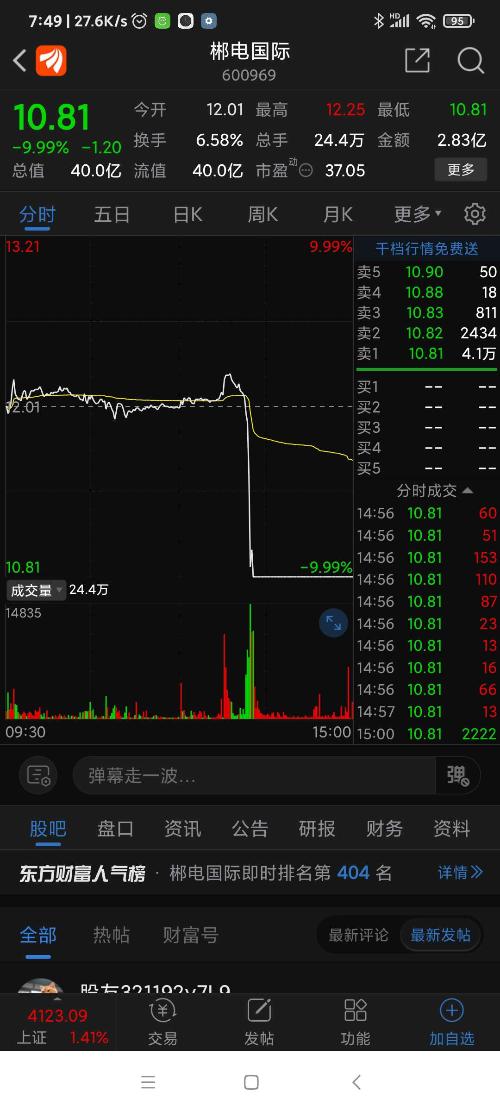 郴电股份,昨日跌幅列沪深股市第二名。