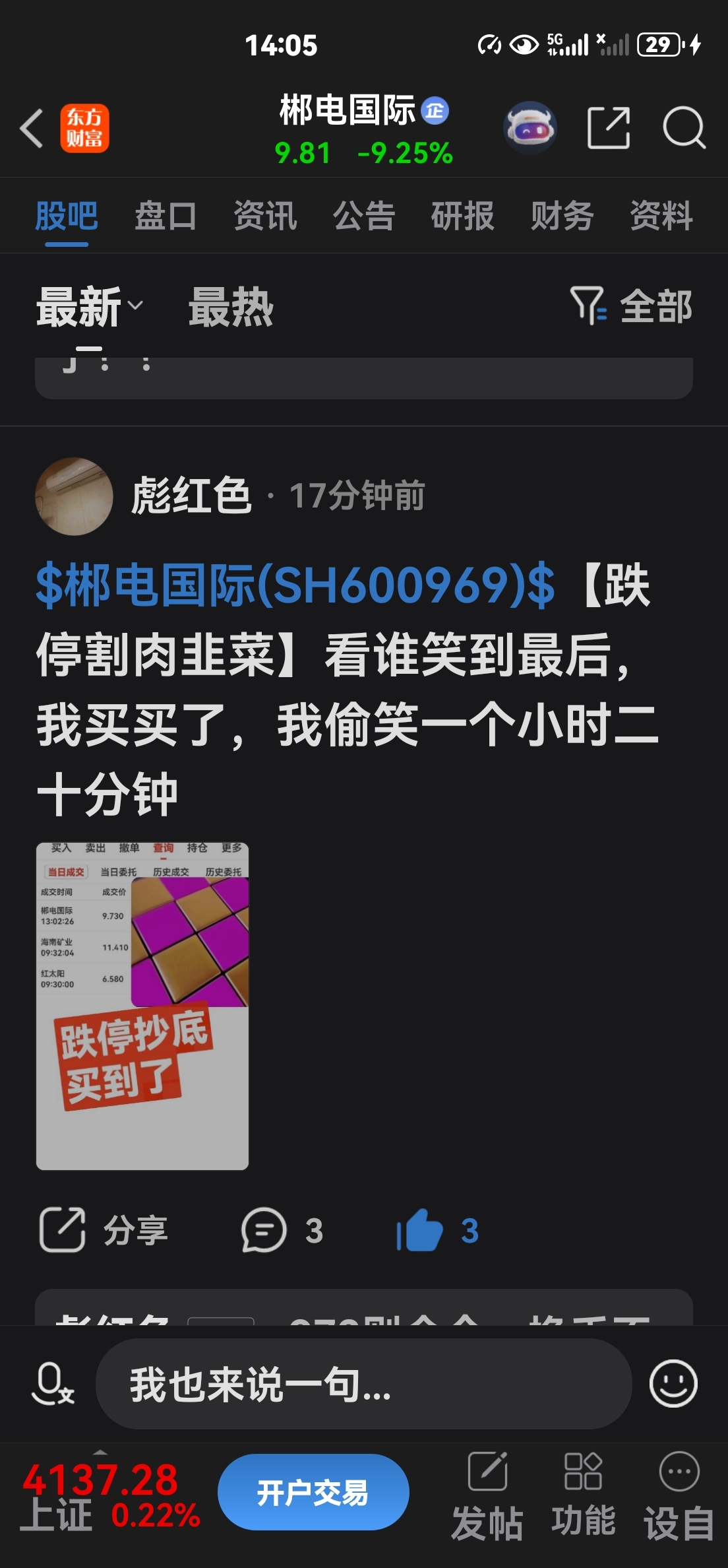 温馨提示: 1.根据《证券法》规定,禁止编造、传播虚假信息或者误导性信息,扰乱证券市场;2.用户在本社区发表的所有资料、言论等仅代表个人观点,与本网站立场无关,不对您构成任何投资建议。用户应基于自己的独立判断,自行决定证券投资并承担相应风险。《东方财富社区管理规定》