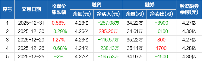 中材国际:融资净偿还257.08万元,融资余额4.23亿元(12-31)