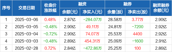 恒源煤电:融资净偿还284.07万元,融资余额2.87亿元(03-06)