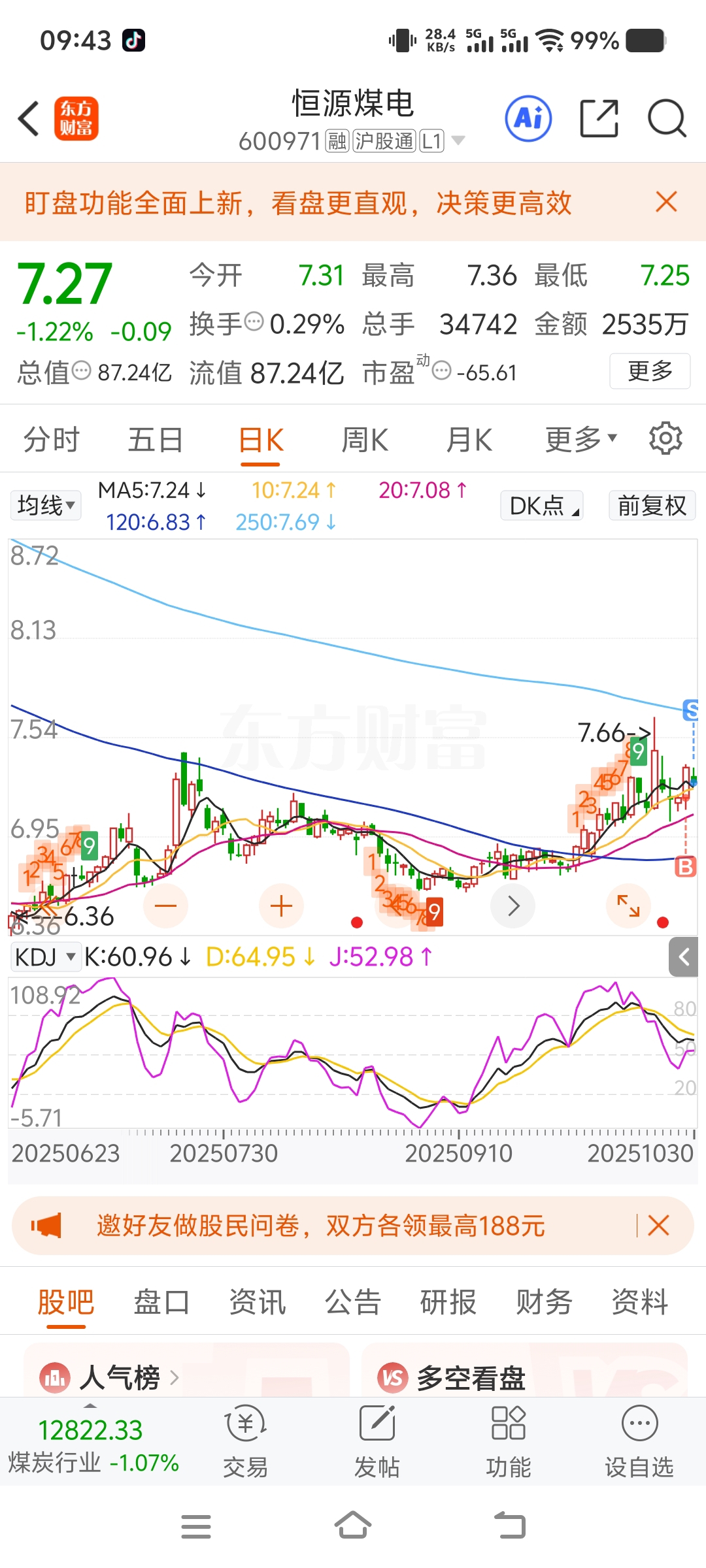 $恒源煤电(SH600971)$ 7.33挂单怎么没成交集合竞价,挂7.26走了,进了其他了