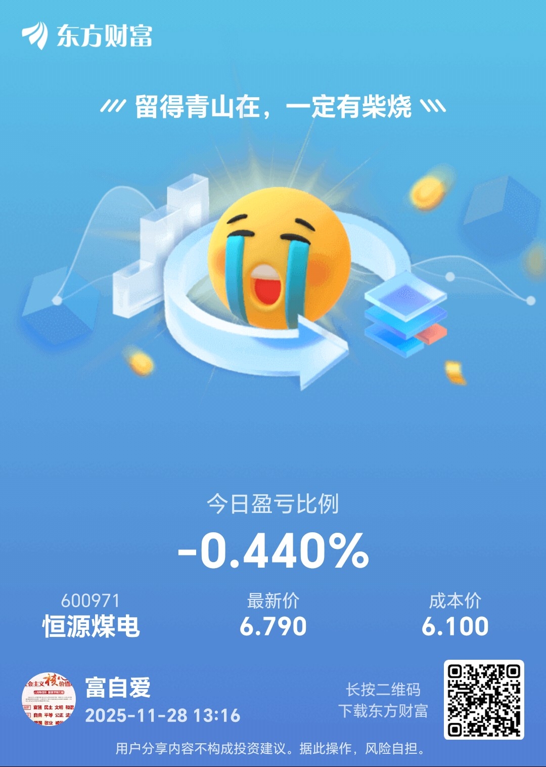 温馨提示: 1.根据《证券法》规定,禁止编造、传播虚假信息或者误导性信息,扰乱证券市场;2.用户在本社区发表的所有资料、言论等仅代表个人观点,与本网站立场无关,不对您构成任何投资建议。用户应基于自己的独立判断,自行决定证券投资并承担相应风险。《东方财富社区管理规定》