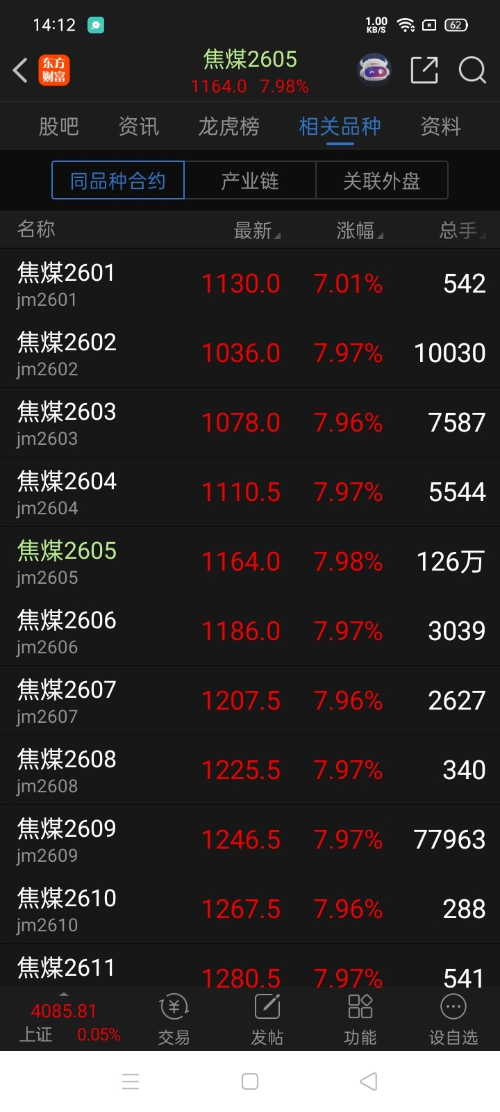 焦煤所有合约全部涨停,有利好消息,抓紧时间进场抢筹。