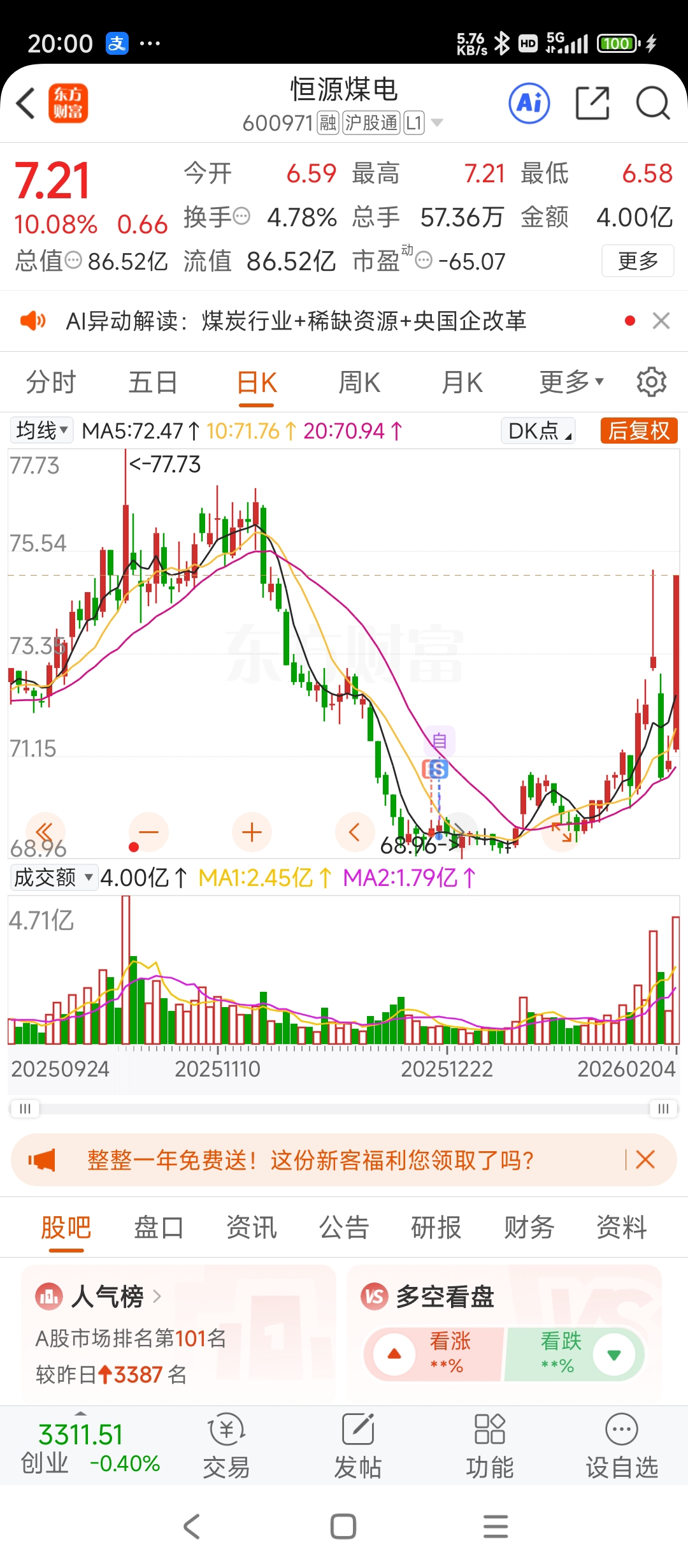 $恒源煤电(SH600971)$ 我这毛病改不了,赚个毛的钱