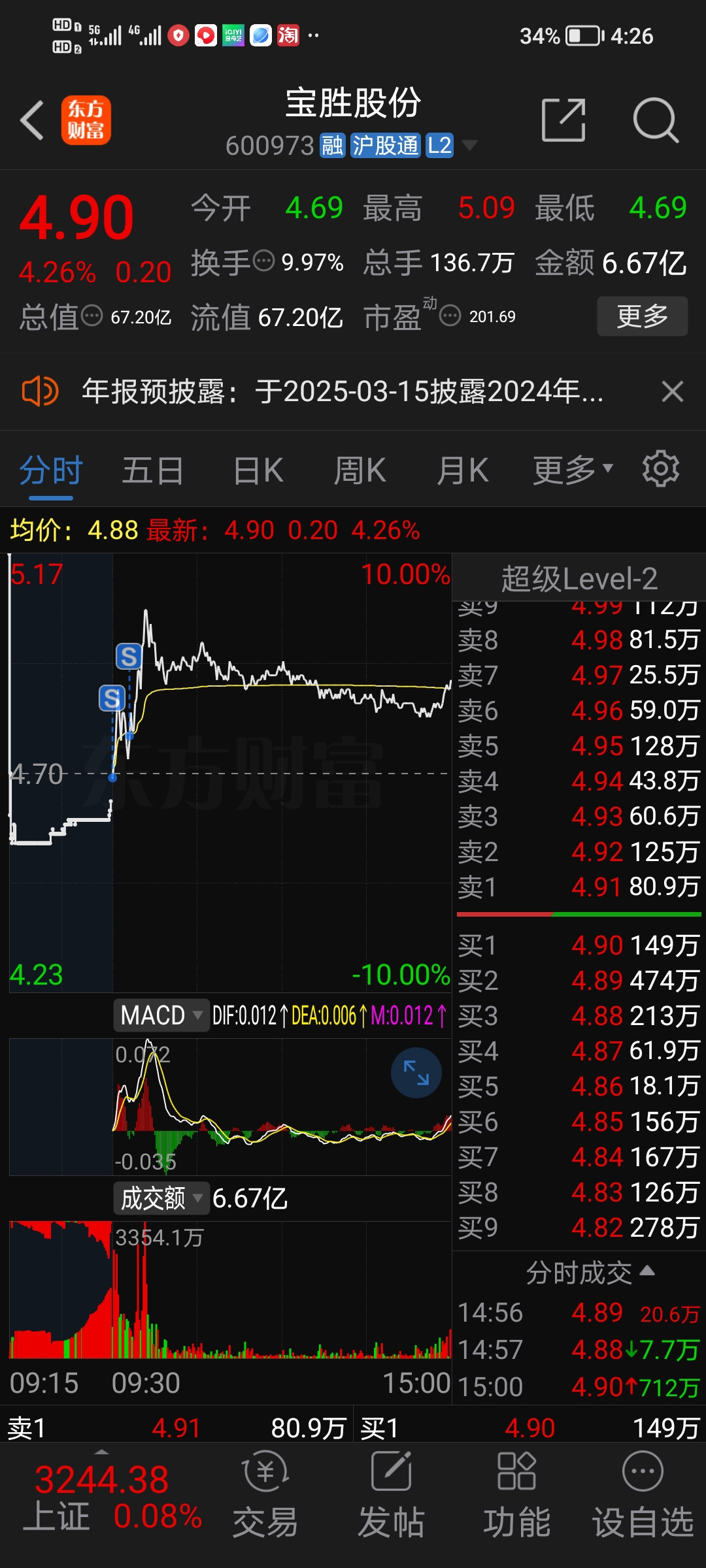 $宝胜股份(SH600973)$ 不好,老夫又中计了,幸亏出来后买入奋达,不然今天无颜见江东父老