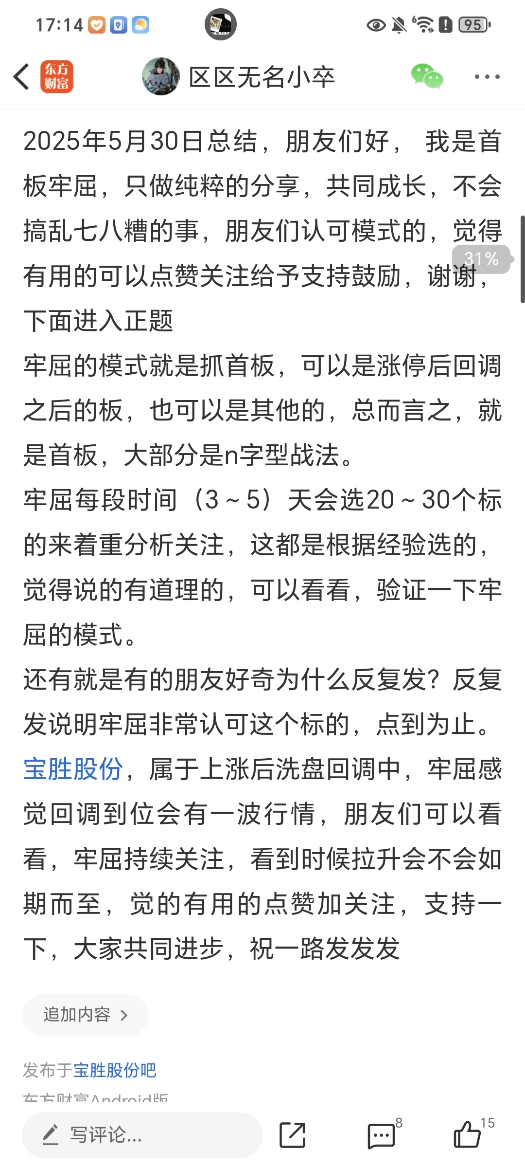 $宝胜股份(SH600973)$ 这个票也走出了一波,但是在第一批里面不算强势的,其他票走出了好几个翻倍的