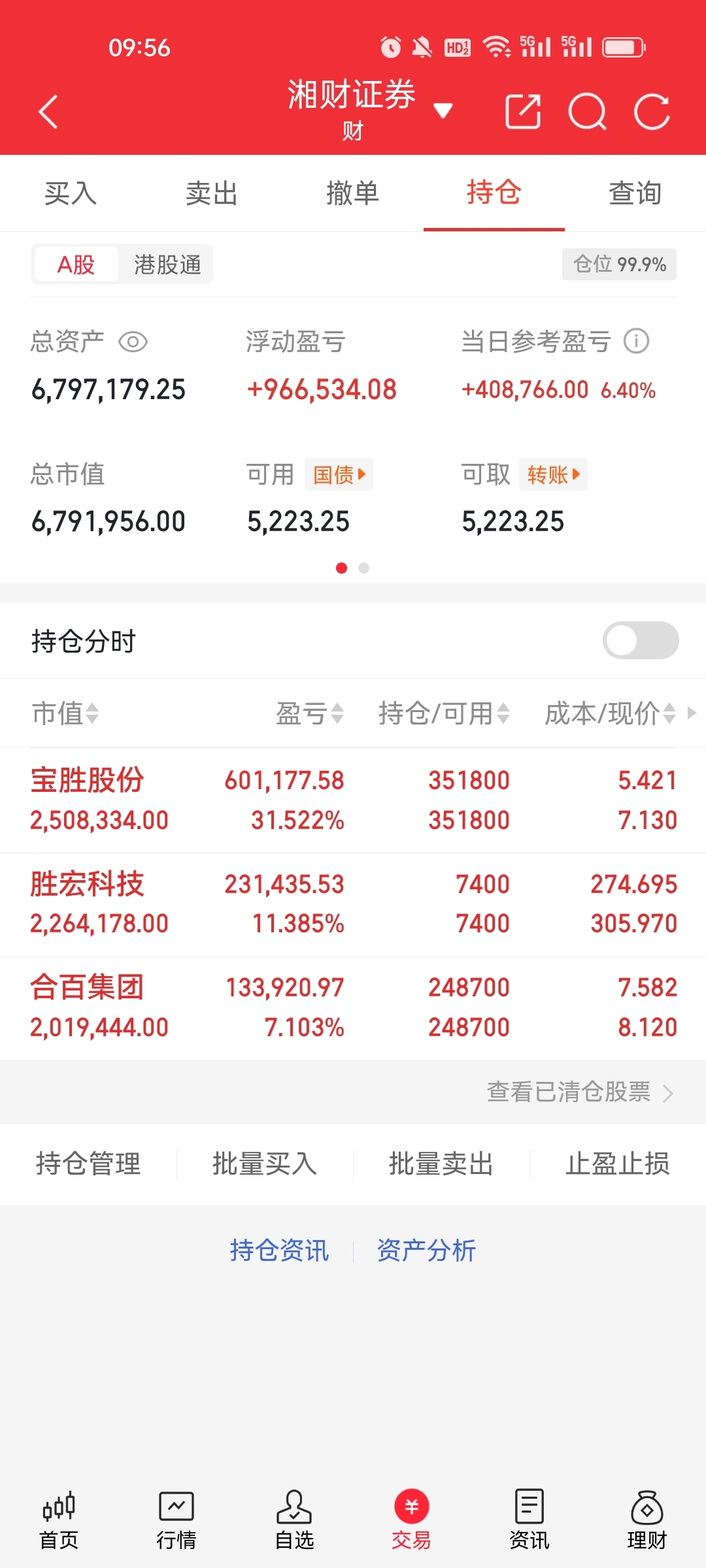 继续持有:$宝胜股份(SH600973)$ 、$胜宏科技(SZ300476)$ 、$合百集团(SZ000417)$